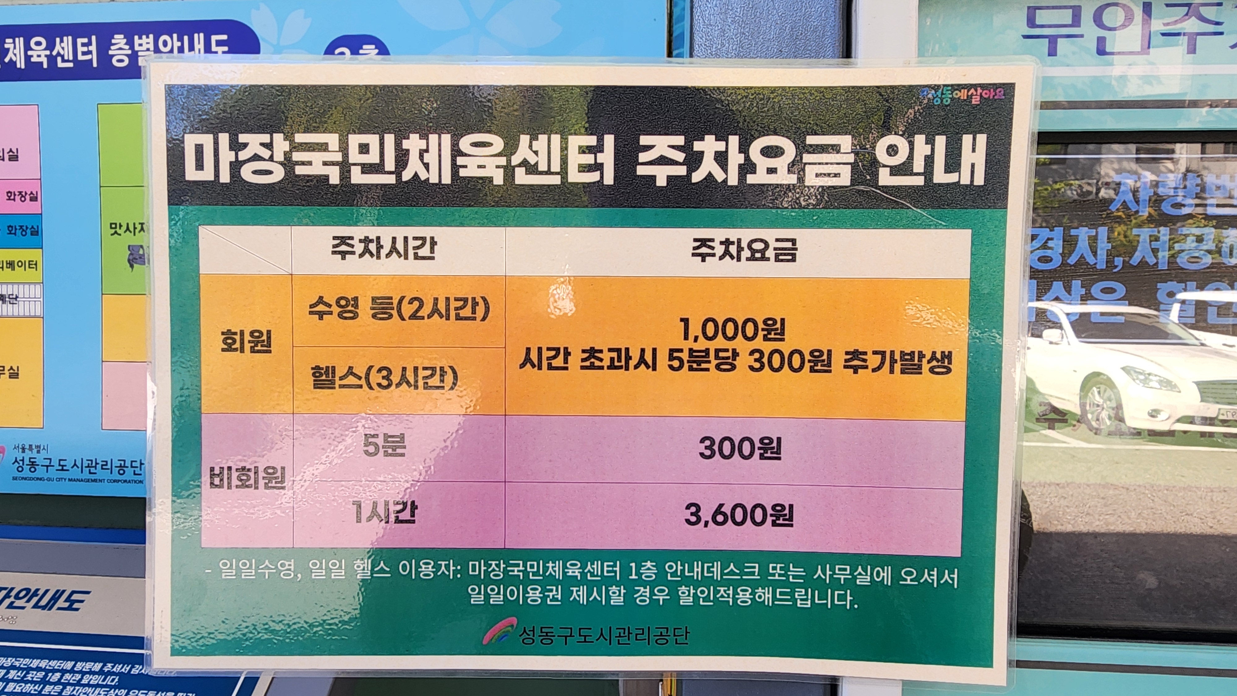 주차는 마장국민체육센터 주차장을