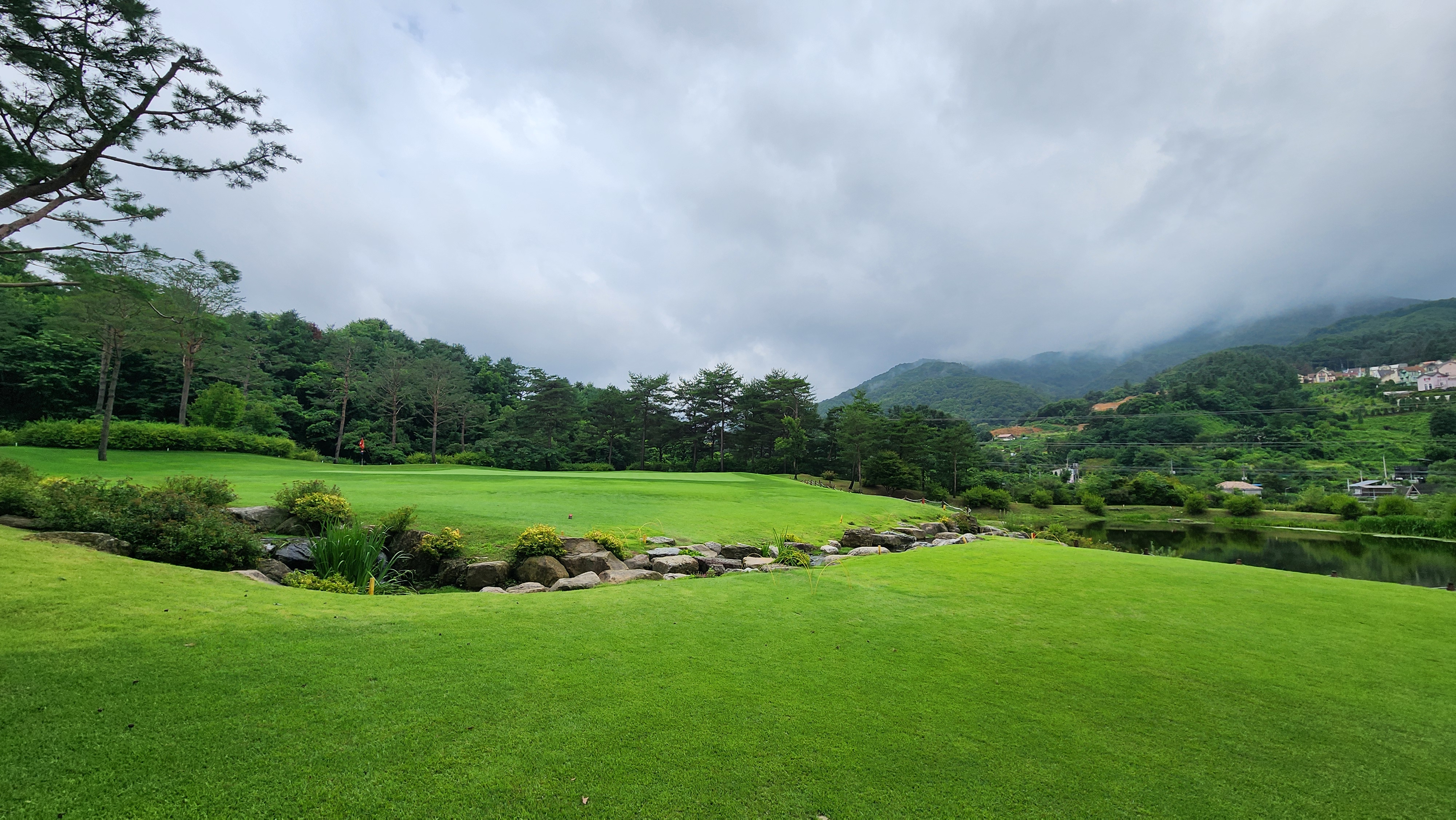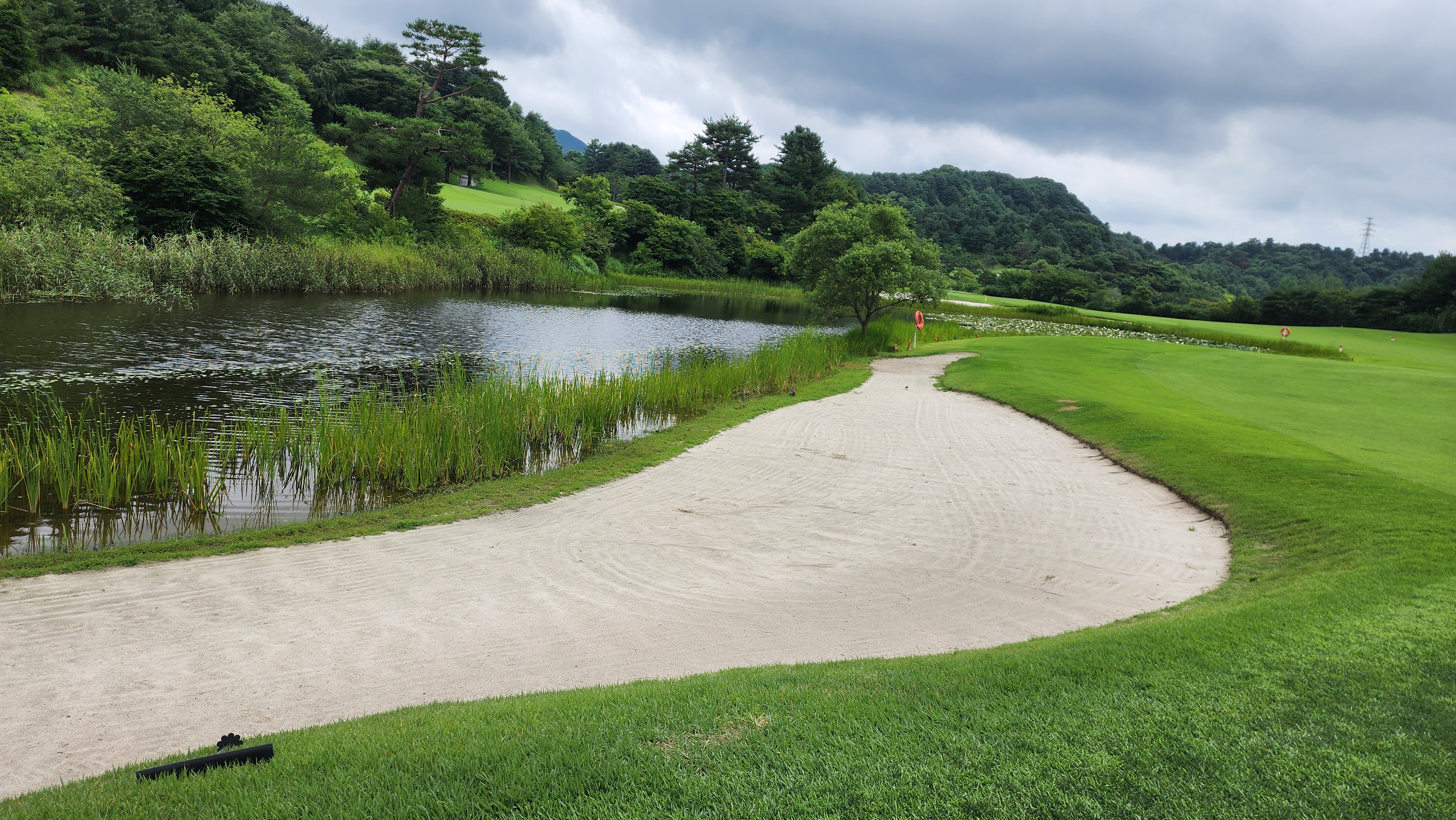 내리막코스로 해저드 영역이 넓어서