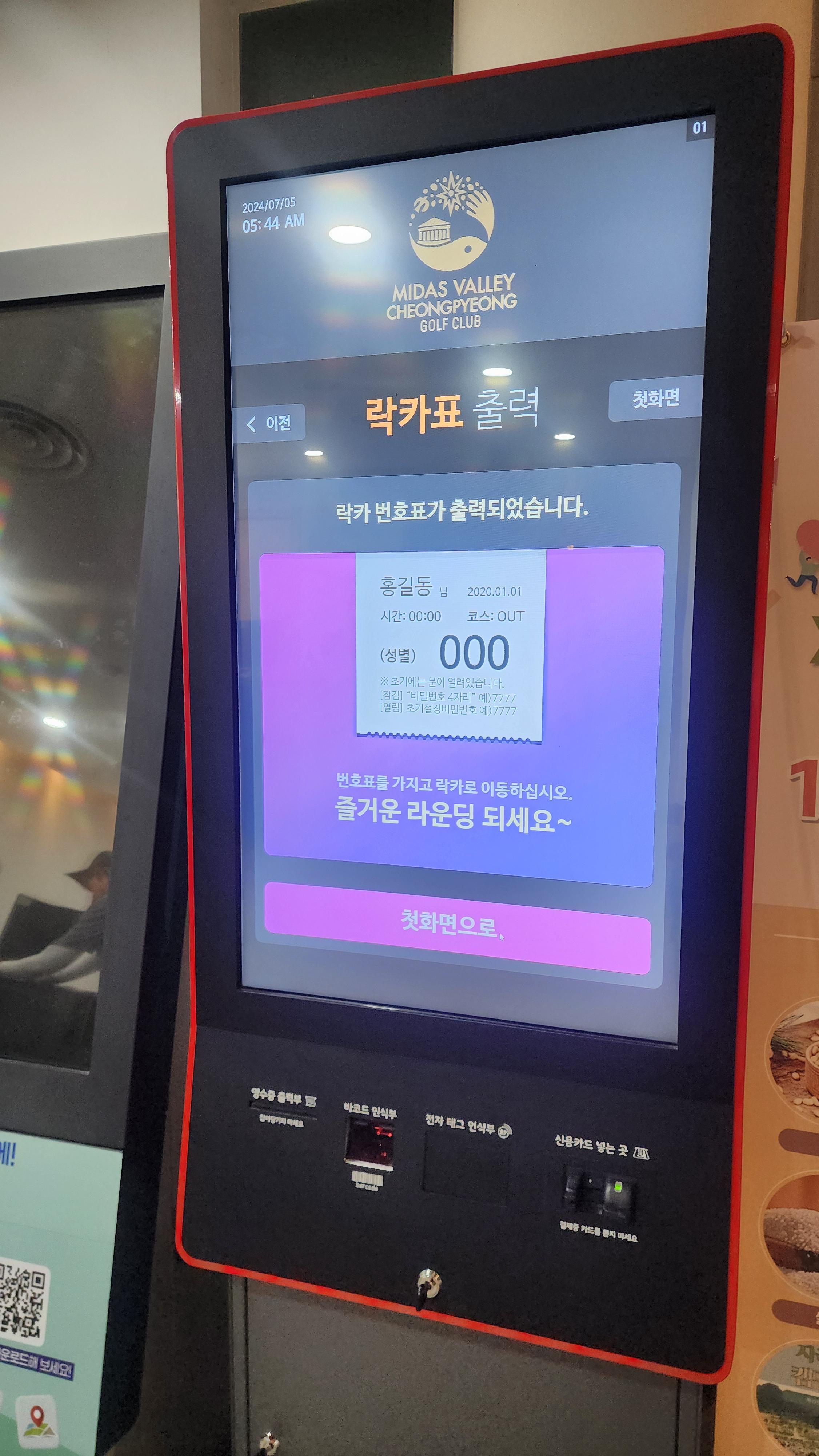 안내데스크에서 체크인하고 락커번호 받거나